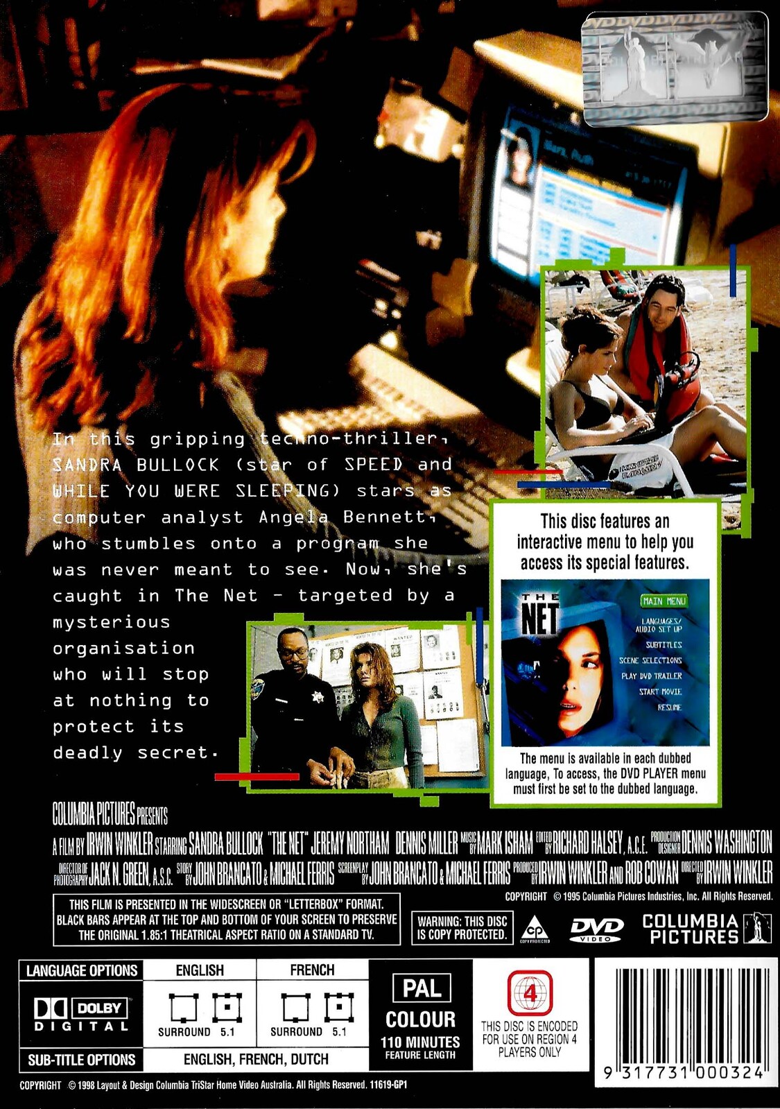 Sandra Bullock, Dennis Miller and Jeremy Northam star in this hit thriller about a computer expert whose life is "erased" by a computer conspiracy. A freelance software analyst, Angela Bennett, is inadvertently drawn into a dangerous conspiracy when a client asks her to de-bug a CD-ROM game. Soon the client turns up dead and Angela is next on the hit-list. After the assassins obliterate her official identity, Angela realizes hers is not the only life being destroyed on the Net. Like the best Hitchcock, THE NET builds tension to unbearable heights until "this edge of your seat nail-biter explodes with suspense. Sandra Bullock is sensational." (Jeanne Wolf, Jeanne Wolf's Hollywood).