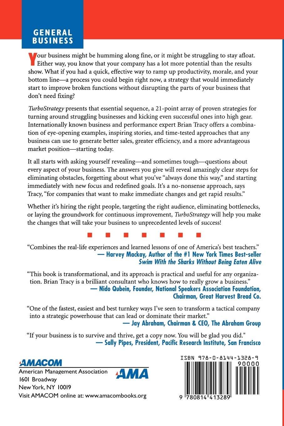 Author: Brian TracyPublisher: AmacomCategory: Business Strategy, Management & Management Techniques, Management: Leadership & Motivation, Advice On Careers & Achieving SuccessBook Format: PaperbackAll the business wisdom in the world isn't worth a dime if it doesn't produce results. Brian Tracy has worked with more than 500 companies throughout the US, Canada, and 22 other countries. He has helped hundreds of thousands of people worldwide to achieve spectacular results, and now he is helping businesses reach new levels of success with TurboStrategy. I call it TurboStrategy, says Tracy,because it is an intensive, fast, short, sharp, effective way of setting and implementing any strategy. Now companies in all industries can get on the fast track to more focused strategy, better planning, more powerful marketing and sales approaches, and higher profits. Readers will discover the practical techniques that the most successful businesses use to thrive, even in the toughest markets. They'll also learn how to: * Maintain flexibility, the key to dealing with an ever-changing business landscape * Articulate their business's vision, values, mission, purpose, and goals--both short- and long-term *Draw a line through the past and become their own turnaround specialists * Hire the best people --and motivate them to excellence Through 21 strategy points and dozens of examples, stories, and quotations from world-class thinkers and corporate leaders, Brian Tracy will show any company how to turbocharge its strategy and get its business firing on all cylinders.