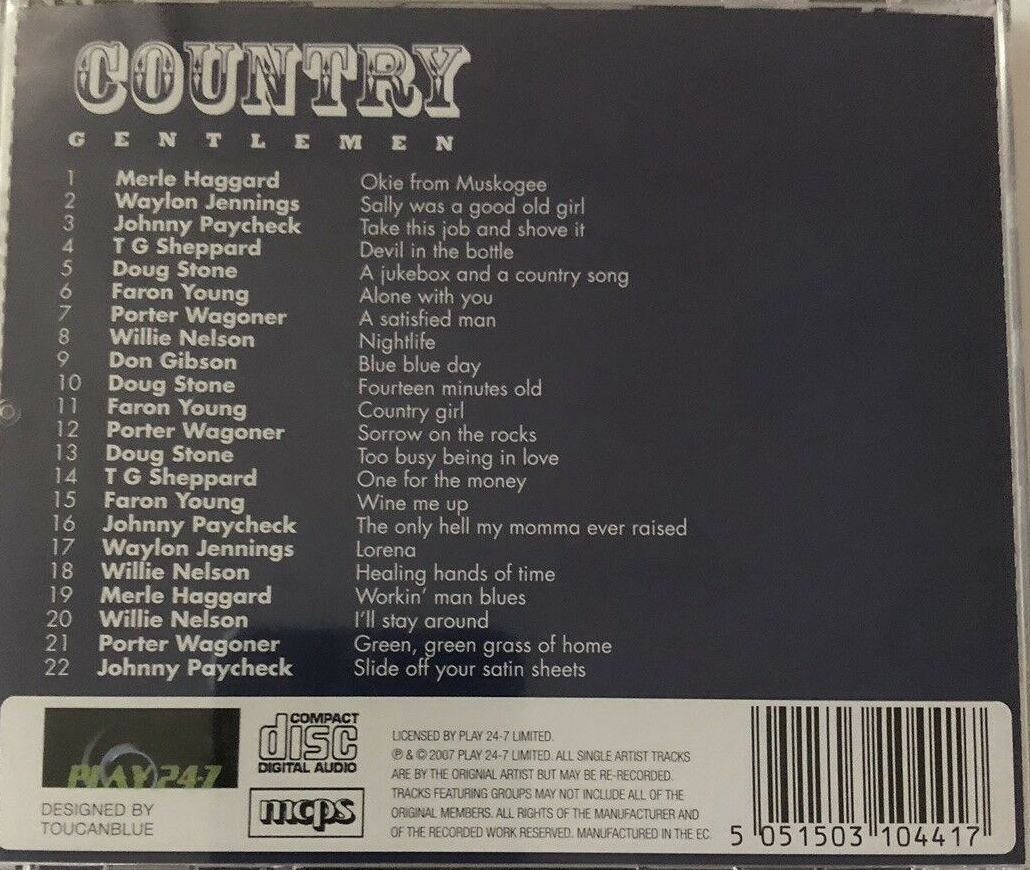 The "Country Gentlemen" CD features a collection of songs by various artists. Enjoy the soothing melodies and heartfelt lyrics of this country music compilation.